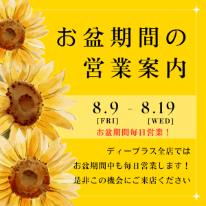 🐬︎ディープラスはお盆も休まず営業いたします🐬︎