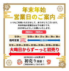 年末年始営業日のお知らせ